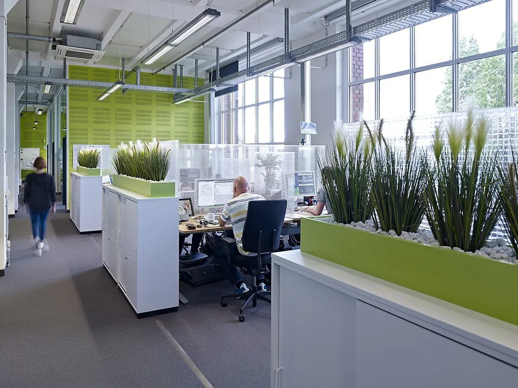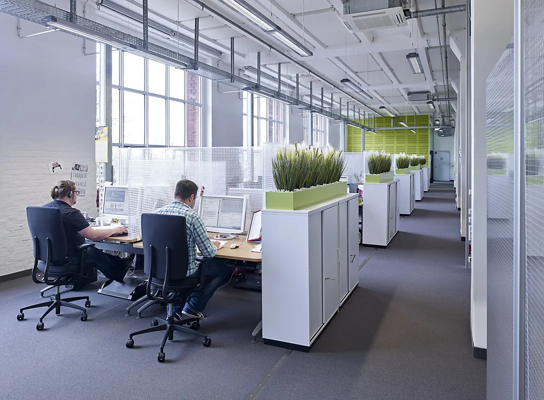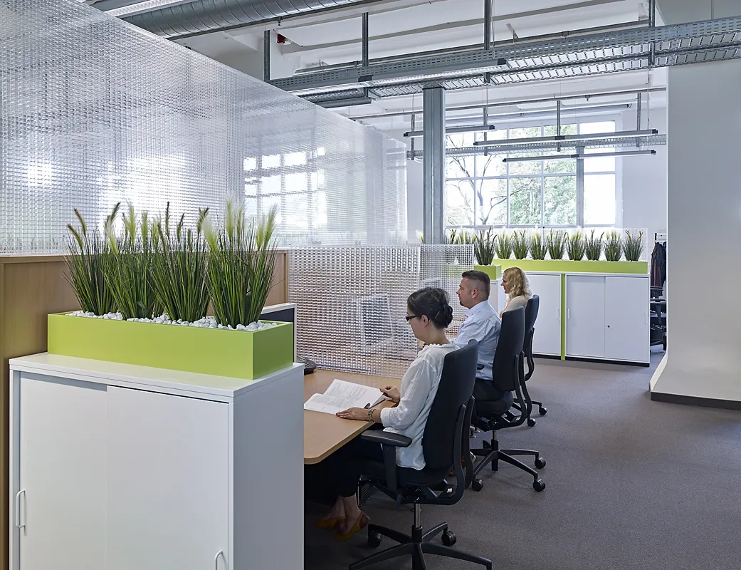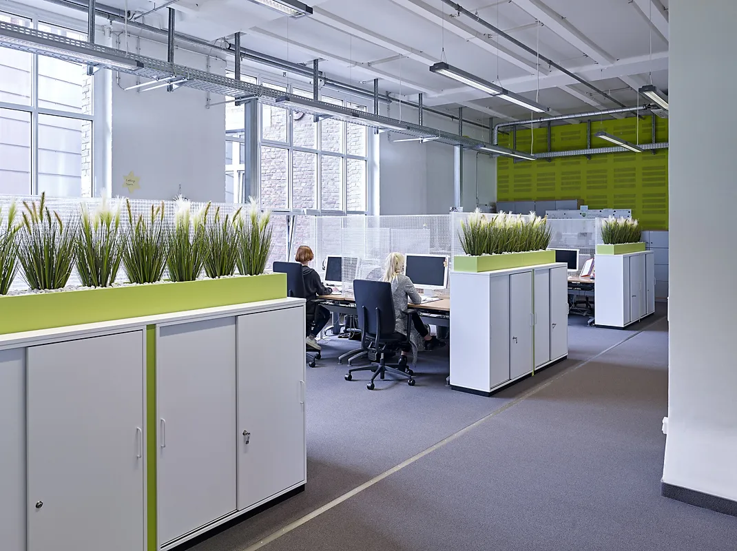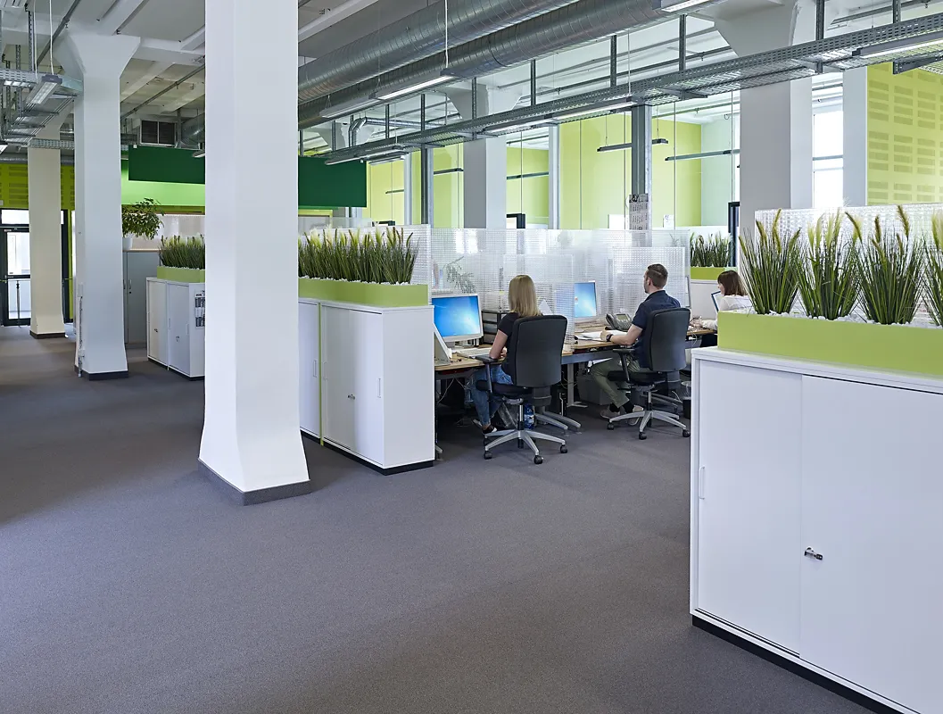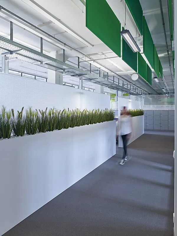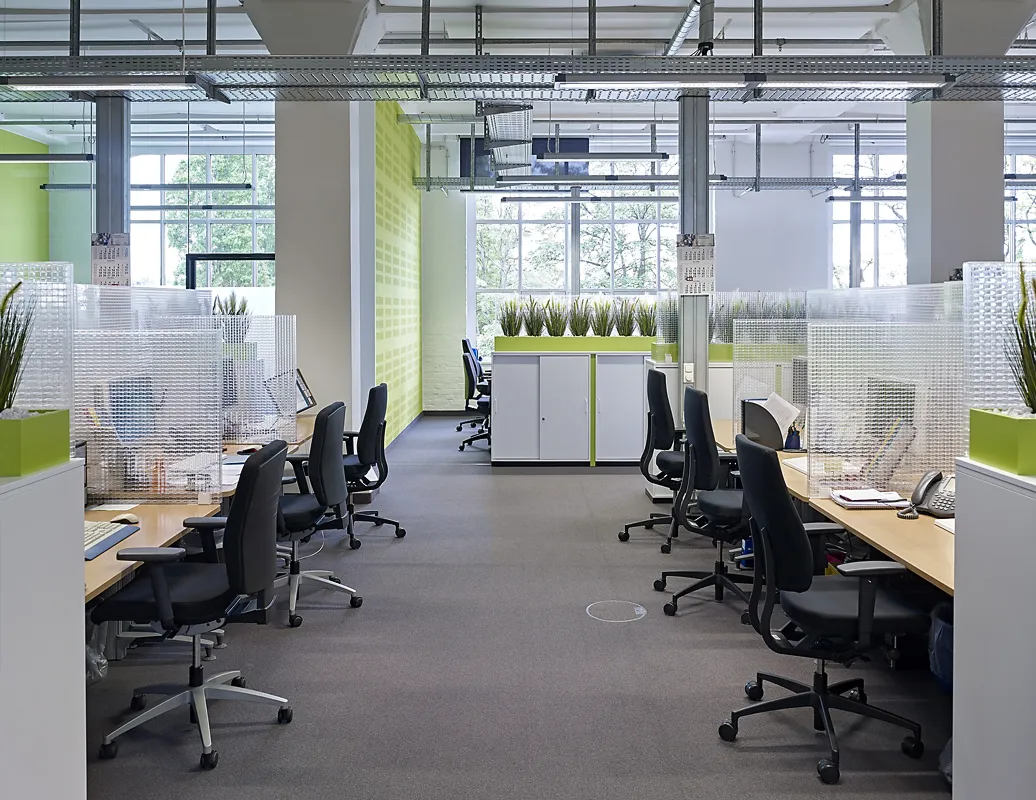 Für einen Versicherungskonzern wurde eine Büroetage mit 300 Arbeitsplätzen neu gestaltet. Besonderer Schwerpunkt lag auf der akustischen Konditionierung, um eine ruhige und produktive Arbeitsumgebung für Kundencenter-Tätigkeiten zu schaffen. Die Raumaufteilung und Ausstattung unterstützen effizientes Arbeiten und sorgen für eine funktionale, moderne Bürowelt.