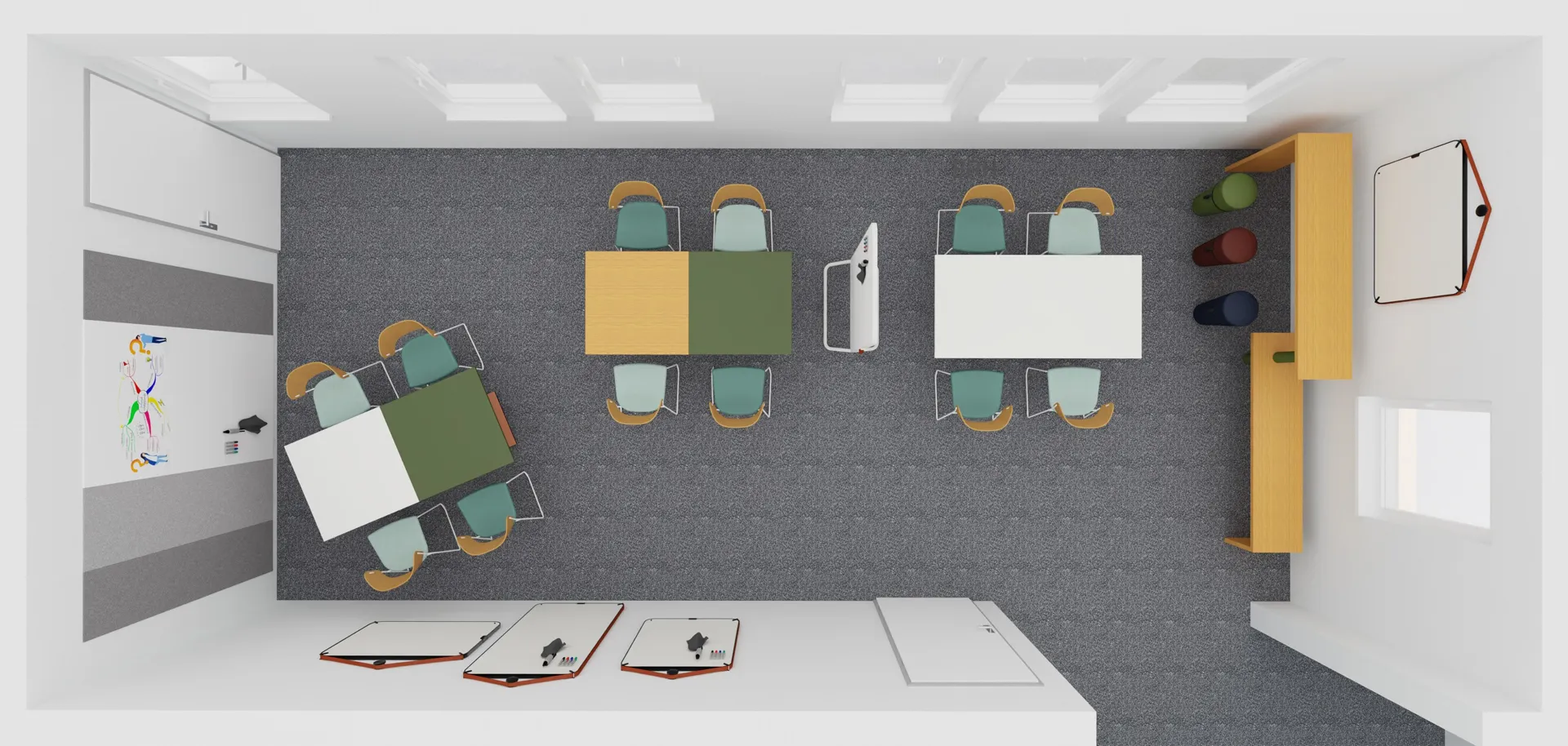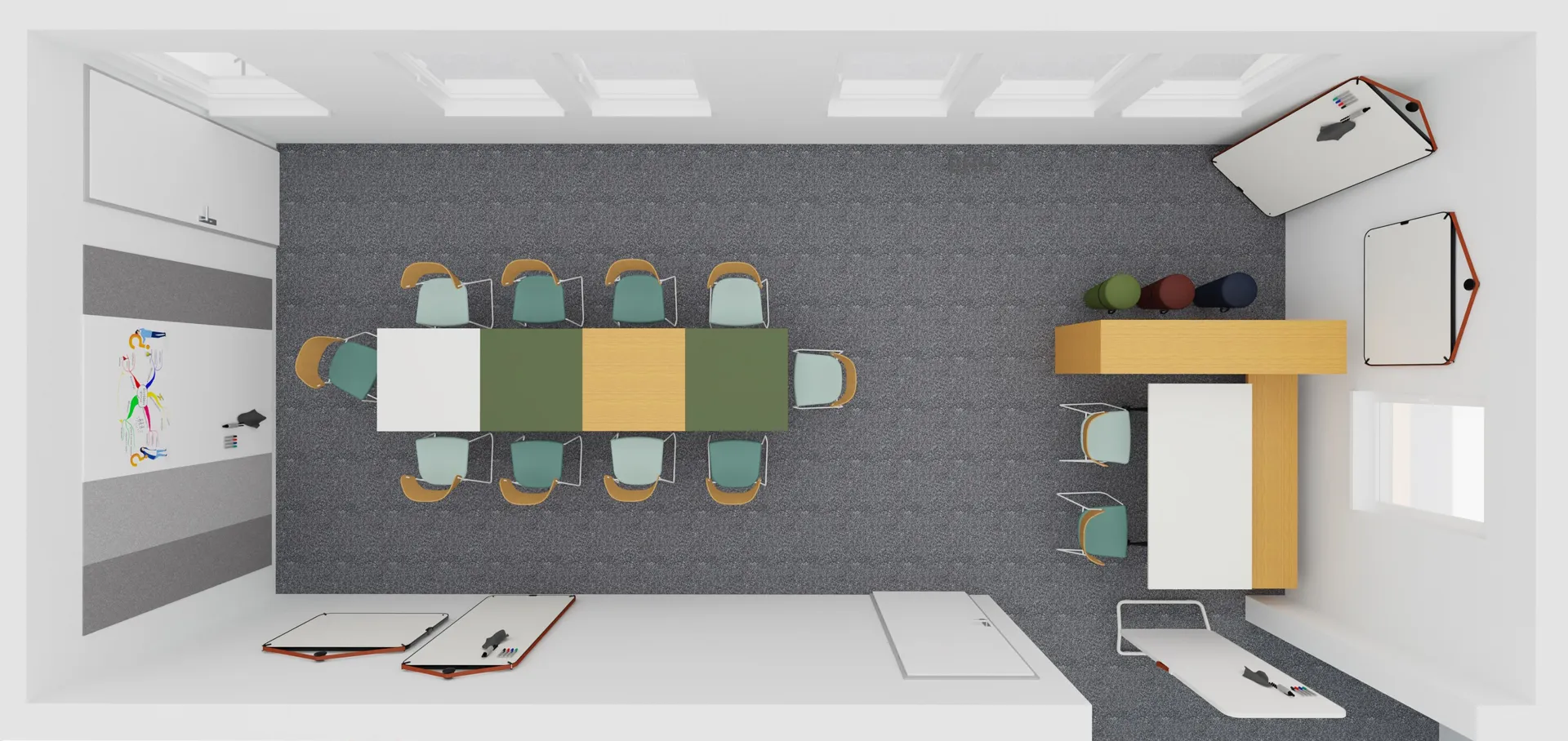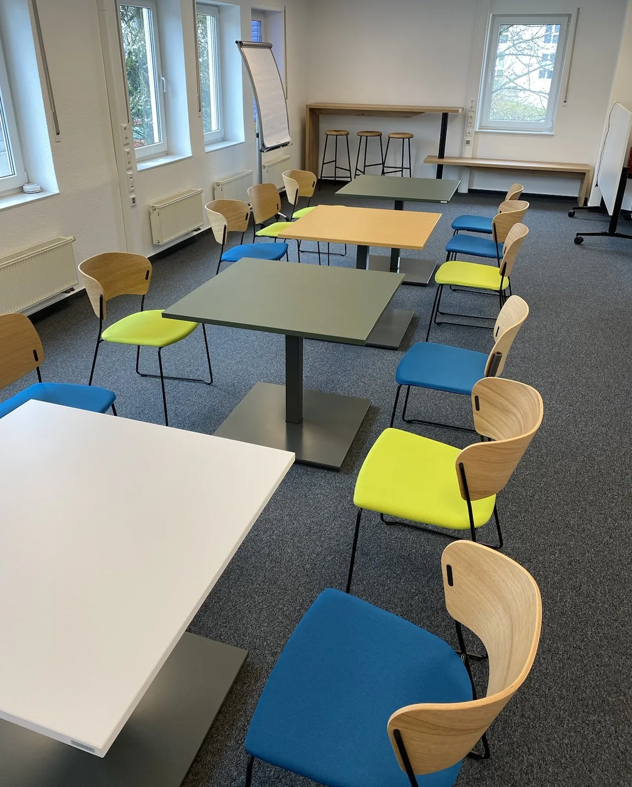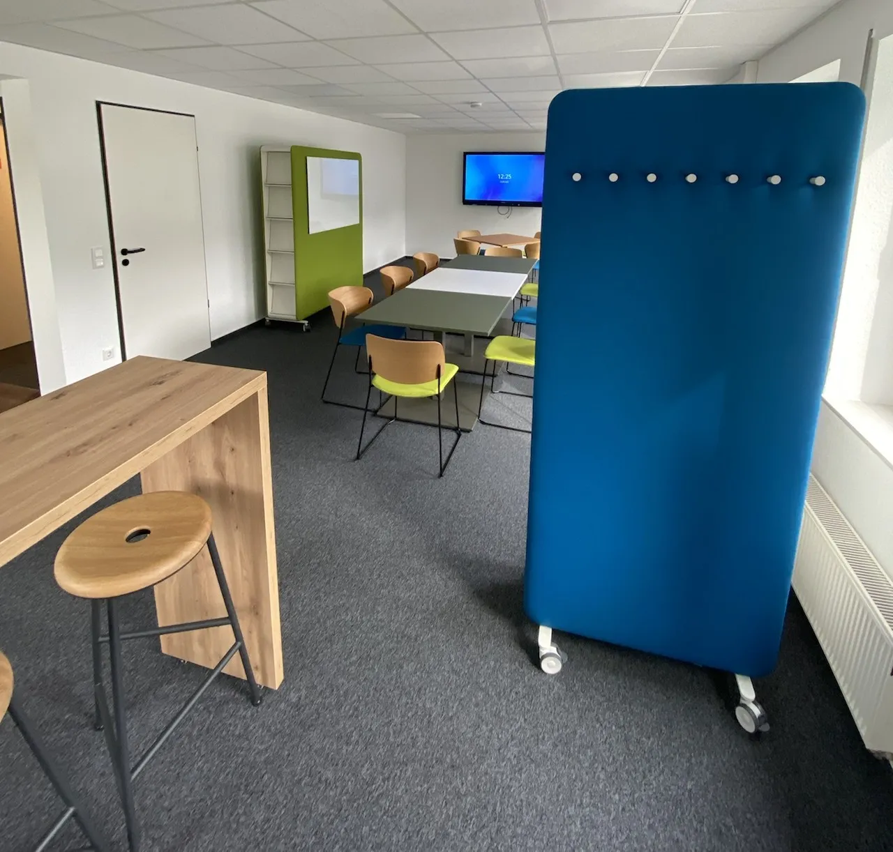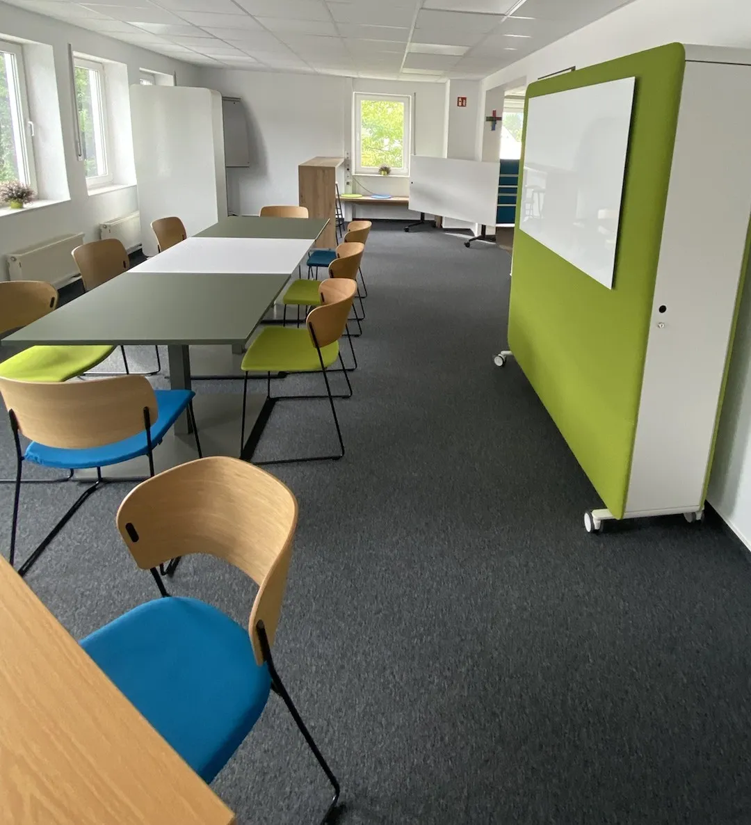 Der Multifunktionsbereich ist so gestaltet, dass er unterschiedlichste Lern- und Arbeitsformen unterstützt. Ob Gruppenarbeiten, Workshops, kreative Projektarbeit oder gemeinsames Erarbeiten von Lösungen – durch flexible Möbel, mobile Tafelsysteme und eine offene Raumstruktur entstehen Räume, die sich schnell und einfach an die jeweilige Situation anpassen lassen.
